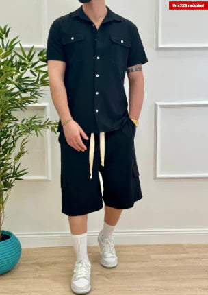 This men's set includes a coordinated outfit designed for formal events or important meetings. It is suitable for occasions that require a polished presentation. Its simple design allows for practical use.